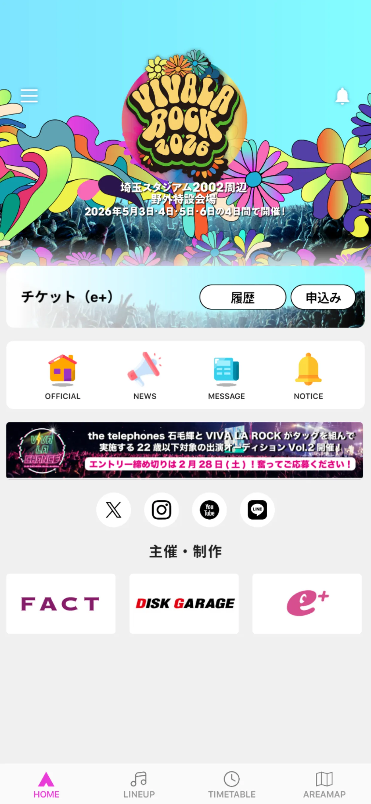 - ※VIVA LA ROCK 2026公式アプリを各ストアからダウンロードの上、お申込みください。2025年ヴァージョンをインストールしている方は、必ず2026年ヴァージョンへとアップデートをお願いいたします。