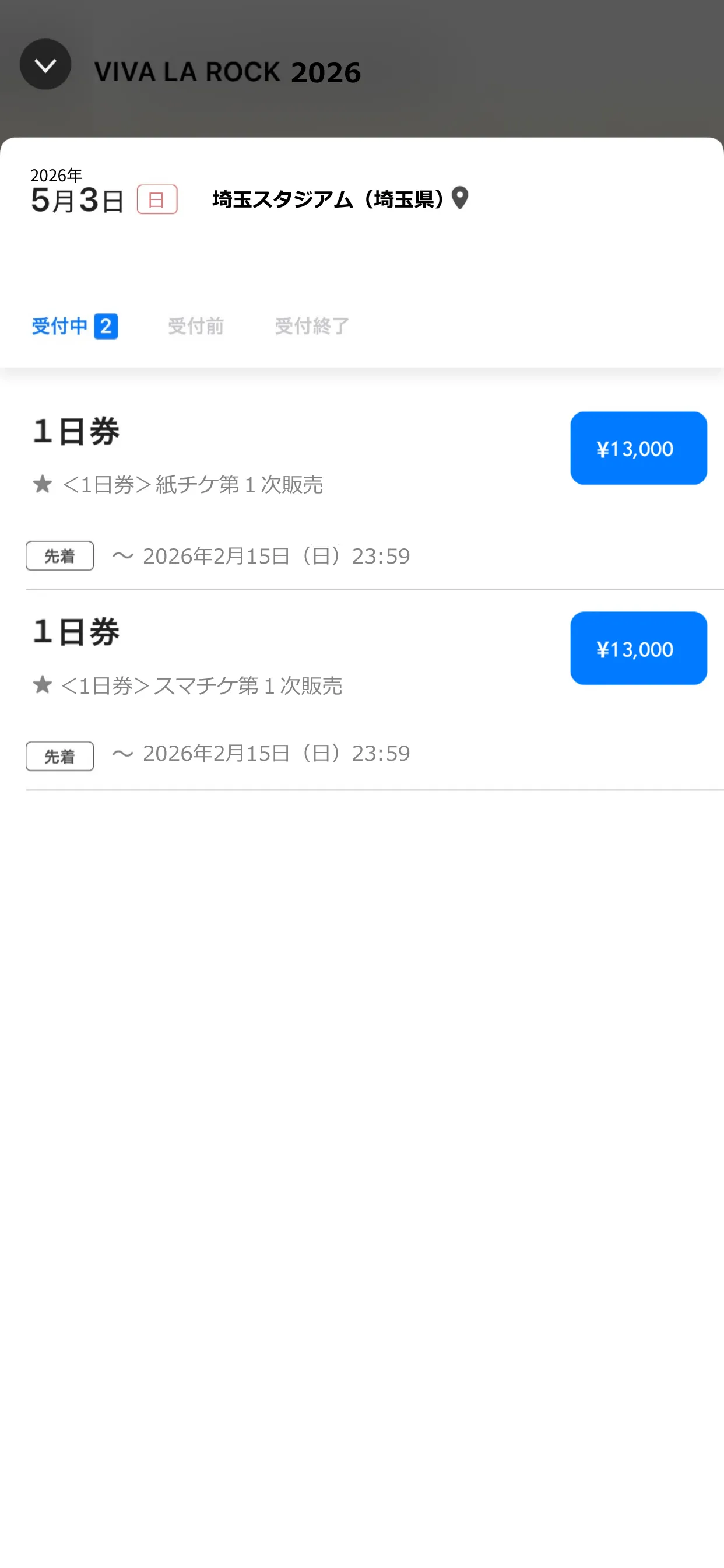 チケット第2次先行販売、全券種、